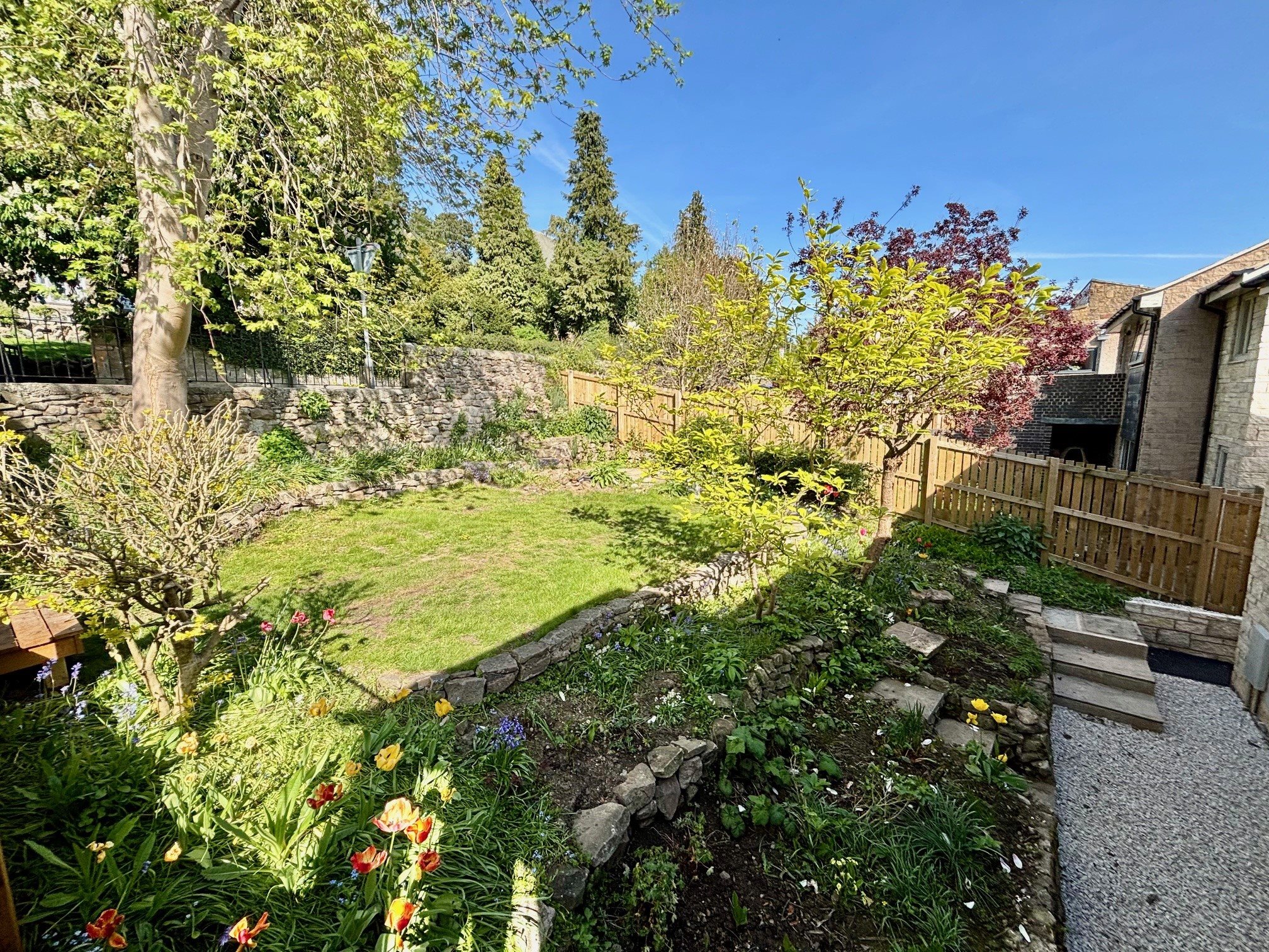 Broad balcony from the first floor, plus mature gardens, ample off road parking and single garage.