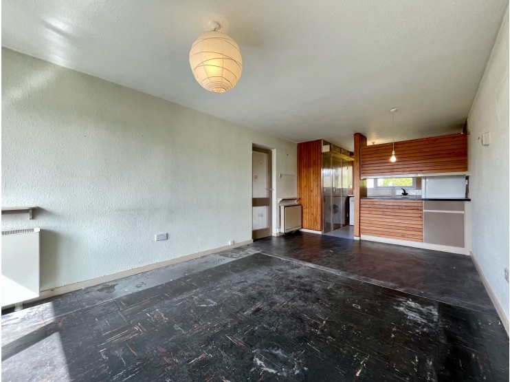Kitchen – 2.38m x 2.26m (7’ 8” x 7’ 4”) lying adjacent to the sitting room and being fitted with a modest range of cupboards and work surfaces incorporating a stainless steel sink unit and electric hob. There is a range of full height cupboards, one housing the hot water cylinder), plumbing for an automatic washing machine and further appliance space.