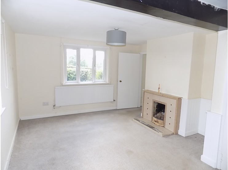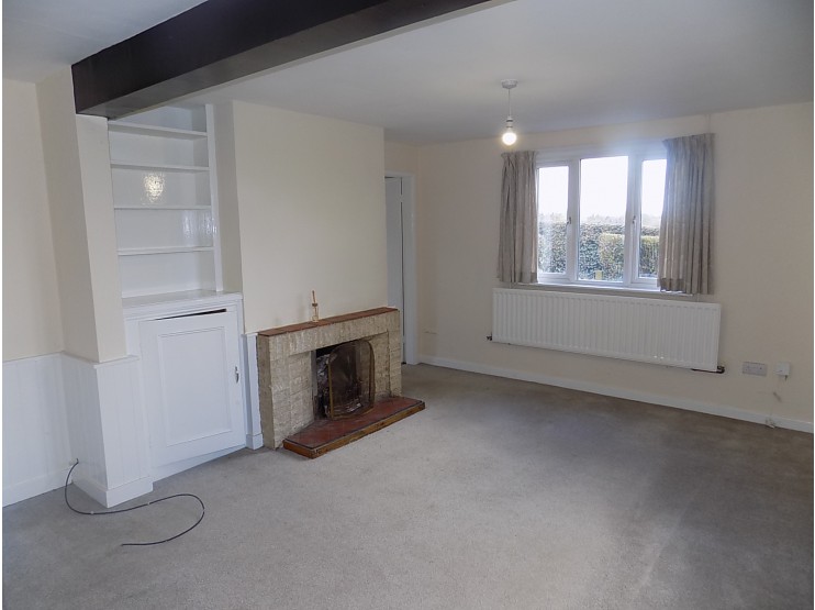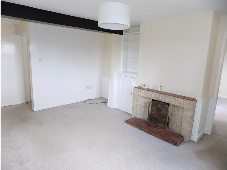 Sitting Room 5.43m x 3.82m (17’10” x 12’6”) having tiled fireplace with open grate, quarry tile mantel and hearth, flanking inbuilt cupboard, two sealed unit double-glazed windows, central heating radiator, beamed ceiling.