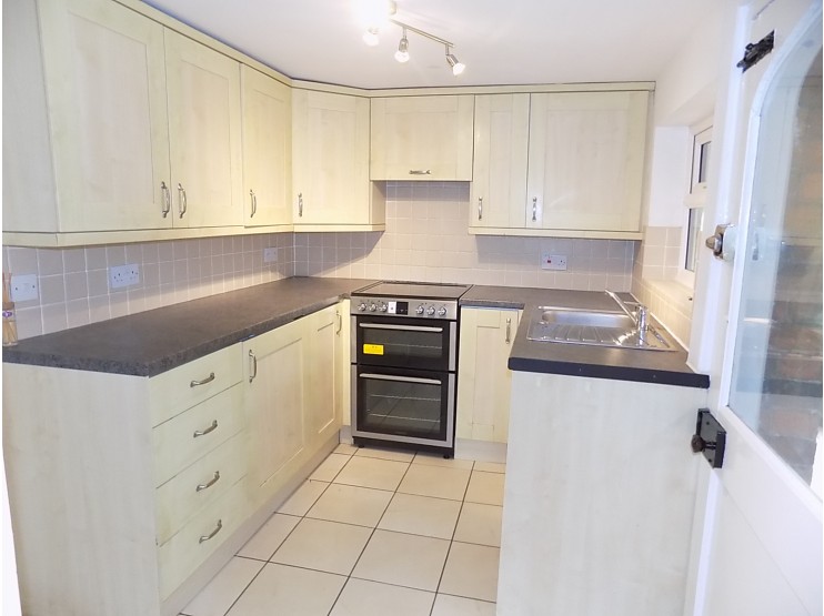 Fitted Kitchen 3m x 2.16m (9’10” x 7’1”) having ceramic tiled floor, a range of fitted base cupboards and wall cupboards with work-surfaces having splash-back tiling and inset single drainer stainless steel sink unit, electric cooker point, half glazed door to exterior rear, UPVC sealed unit double-glazed window.