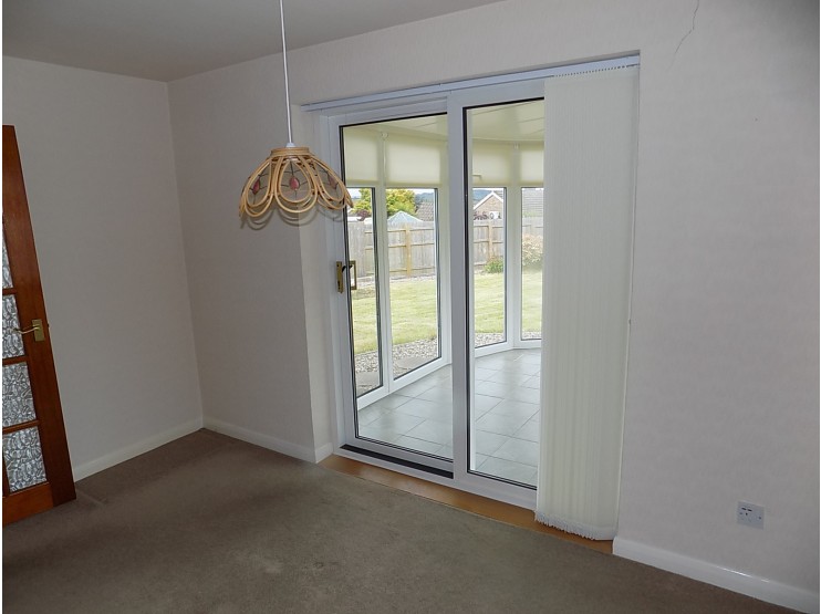 Bedroom Three or potential Dining Room 2.76m 2.61m (9’ x 8’7”) with UPVC sealed unit double-glazed window overlooking the garden, central heating radiator with shelf over and UPVC sealed unit double-glazed sliding patio door leading to