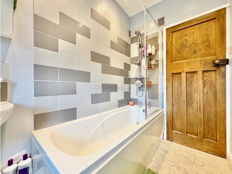 Bathroom – fitted with a white suite to include panelled bath and mains shower over, pedestal wash hand basin and WC. There is complementary wall tiling, neutral flooring, chromed ladder radiator and rear facing obscure glazed window.