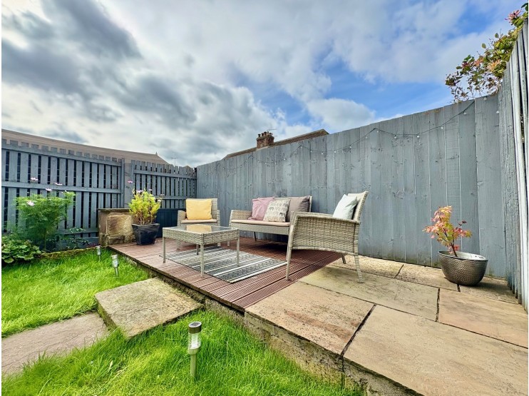 The delightful rear gardens, which are south facing, are laid to lawn with a flagged patio at the house, central pathway leading to a decked area with side patio at the head of the garden providing a space for family recreation and relaxation.