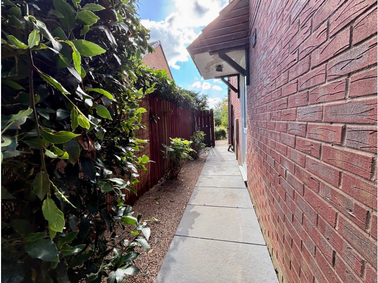 The house stands to one side of a shared courtyard within which the property comes with an area of car parking immediately to the front sufficient for two vehicles. The courtyard offers space for turning and manoeuvring and included in the sale there is an additional area of block paved amenity ground planted with two trees.