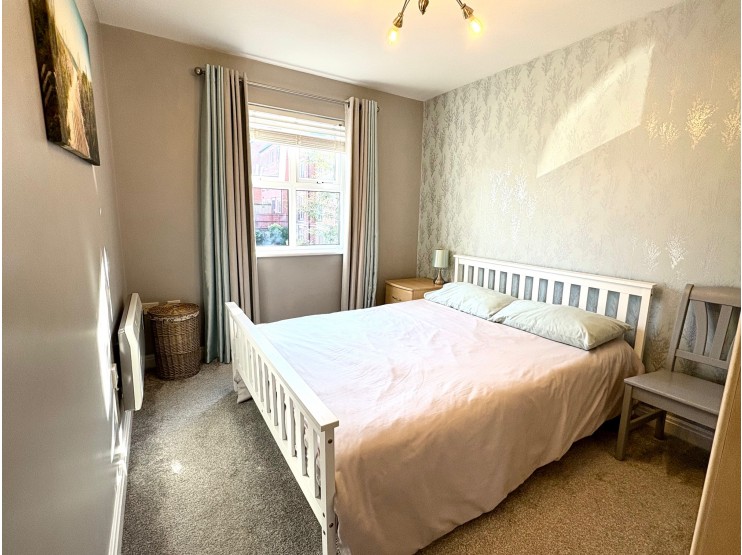 Bedroom Two 3.55m x 2.52m (11’7” x 8’3”) plus door recess. With wall-mounted electric heater and rear aspect UPVC double-glazed window.