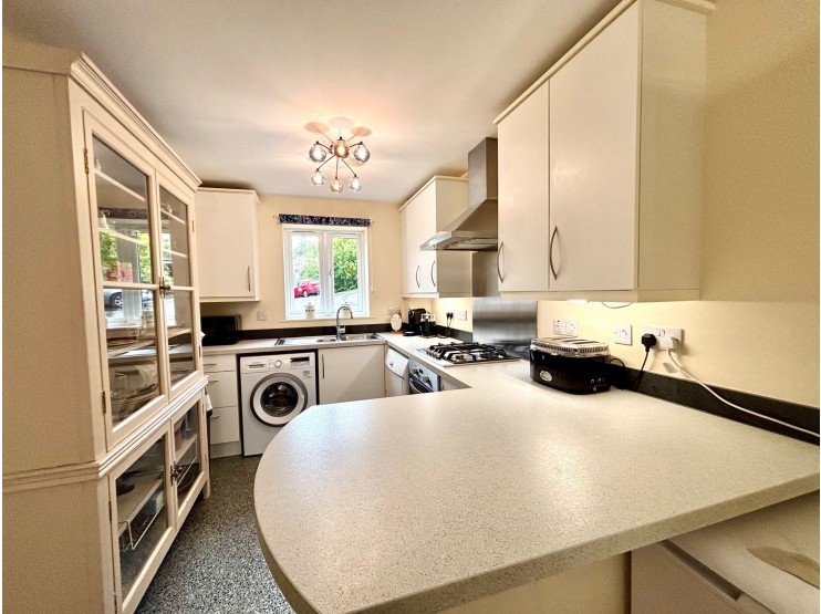 Breakfast kitchen – 3.18m x 2.69m (10’ 5” x 8’ 10”) fitted with an extensive range of cupboards, drawers and work surfaces, inset stainless steel sink unit, washer / dryer, 4-ring gas hob, under counter oven, extractor canopy and breakfast bar. One wall cupboard conceals the gas fired central heating boiler.