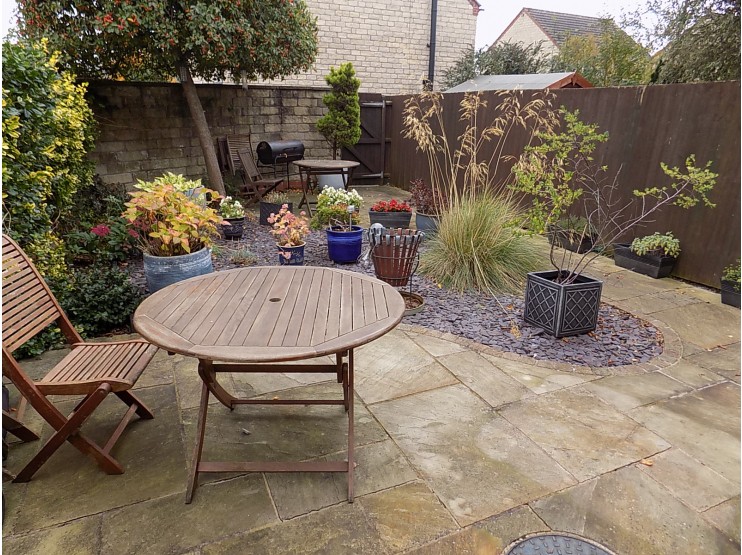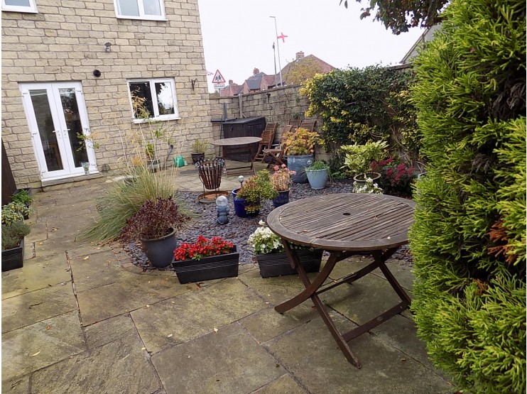 To the front of the property there is a gravelled forecourt garden with adjacent planted shrub bed, all enclosed by a curved natural stone wall. To the rear, the property has the benefit of a fully enclosed, very private, rear garden with curved natural stone patio, slated bed and planted shrub and evergreen borders. There is a rear gated access to the Tarmacadam driveway parking area with space for two cars.
