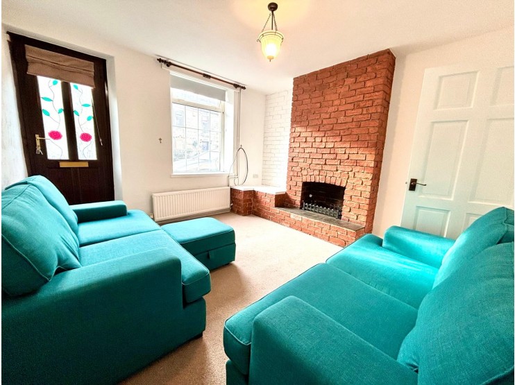 Sitting room – 3.80m x 3.75m (12’ 6” x 12’ 4”) with front aspect window, exposed brick chimney breast and fireplace. A door leads through the stair lobby into the…
