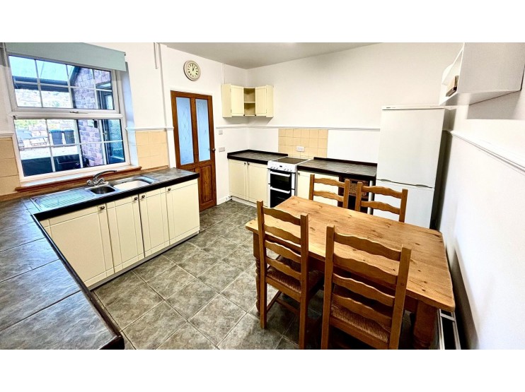 Dining kitchen – 3.75m x 3.12m (12’ 4” x 10’ 3”) fitted with a range of modern cupboards and tiled work surfaces, set with a 1 ½ bowl sink unit. There is an electric cooker point, position for white goods and space for daily dining. A window looks out to the rear and a part glazed door opens to the…