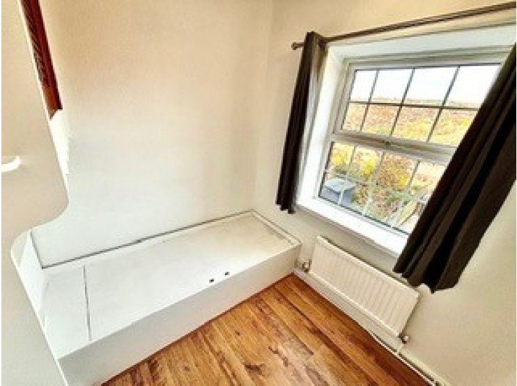 Bedroom 2 – 2.17m x 1.95m (7’ 1” x 6; 5”) of modest proportion, built-in bed plinth and storage. The rear aspect window allows pleasing views towards Matlock Bank.