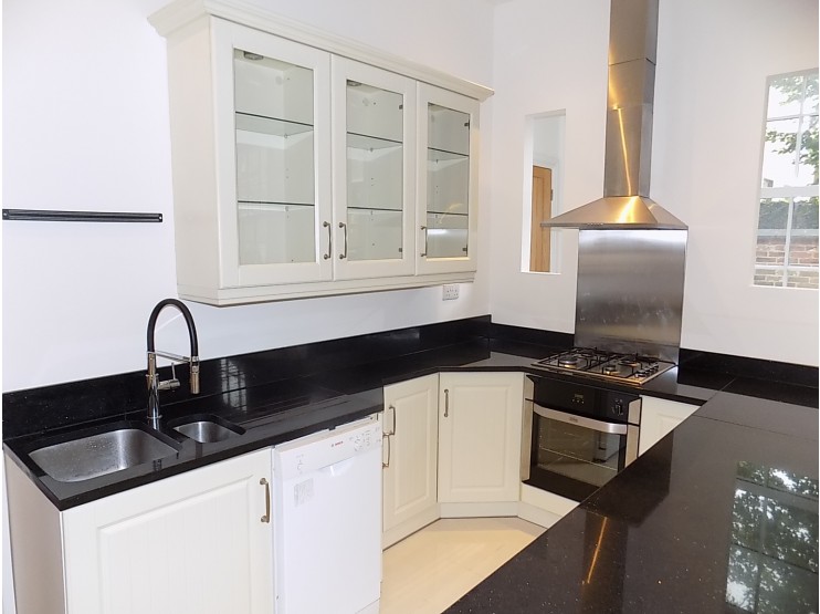 Kitchen Area being comprehensively fitted with an excellent range of contemporary units providing inset 1.5 bowl sink unit with ample polished granite worktops incorporating drainer and matching upstands. Base cupboards, drawer bank, glazed display wall cupboards and integrated electric oven and four burner gas hob with extractor hood over. Space and plumbing for dishwasher. The floor to the kitchen area has a finish of ceramic tile.