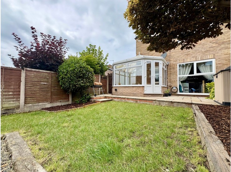 At the rear, the larger garden has been landscaped for ease of maintenance with lawned area, raised beds with specimen tree and larger shrub.  There is a paved patio area by the conservatory and at the head of the garden another seating area takes advantage of the days sun.  The garden offers an ideal spot for family relaxation and recreation, yet there is also opportunity for further landscaping, as required, and for any new owner to stamp their own mark.