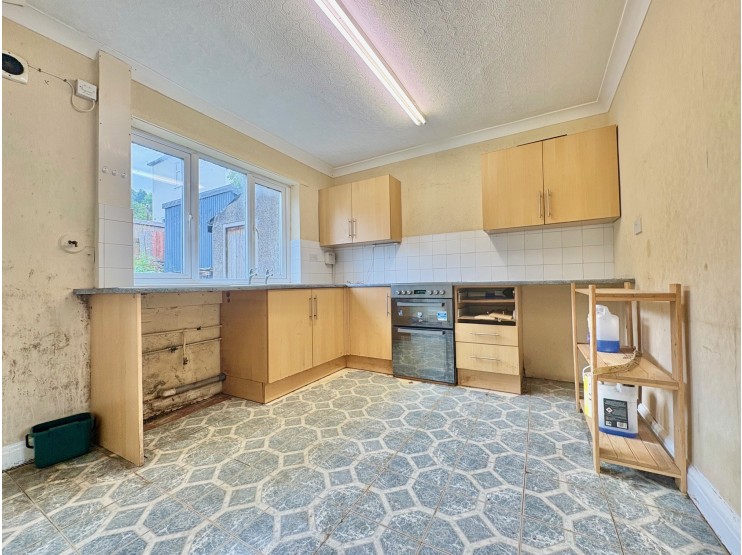 Dining kitchen – 5.22m x 3.42m (17’ 2” x 11’ 3”) fitted with a range of cupboards and work surfaces which incorporate a stainless steel sink unit.  There is space for appliances and a free standing cooker.  There is ample space for daily dining, a broad window overlooks the rear garden, beneath the stairs is a useful pantry, plus a separate utility / storage cupboard.  An external door allows direct access to and from the rear garden.