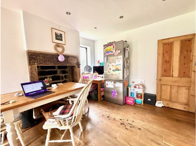 Sitting room – 4.17m x 3.60m (13’ 8” x 11’ 10”) enjoying excellent natural light through the door and sash style window, which are evident throughout the front of the house.  Views reach across the opposing fields and beyond to the wooded hills of Oker and Bonsall Moor on the horizon.  There is a modern oak floor, which continue throughout the ground floor, and a solid fuel stove set to a character stone fireplace.