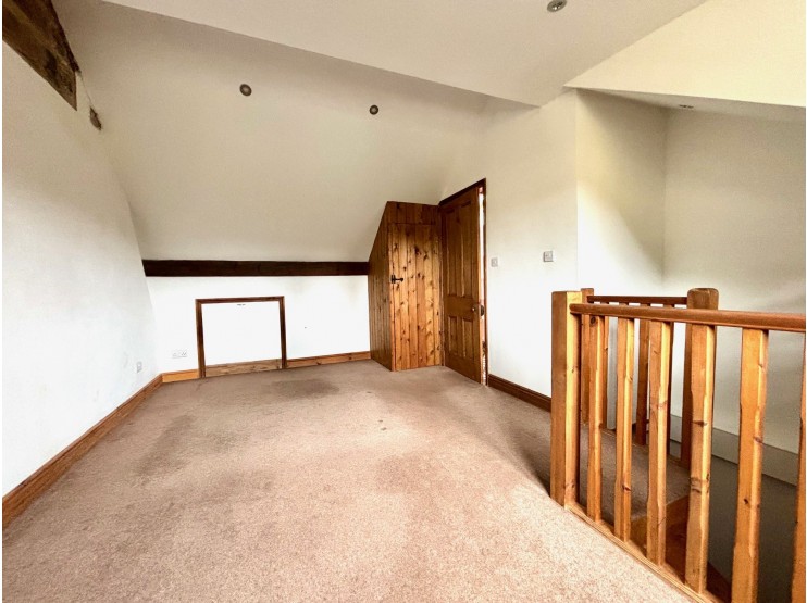 Attic bedroom 3 – 5.28m x 4.25m (17’ 4” x 13’ 11”) converted with a pleasing effect to provide an excellent double bedroom featuring revealed stonework, access to eaves storage and a dormer window at the rear which overlooks the gardens and again provides a pleasant outlook across the countryside which rises beyond the rear boundary.