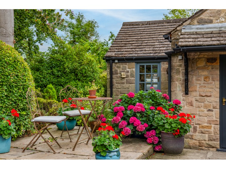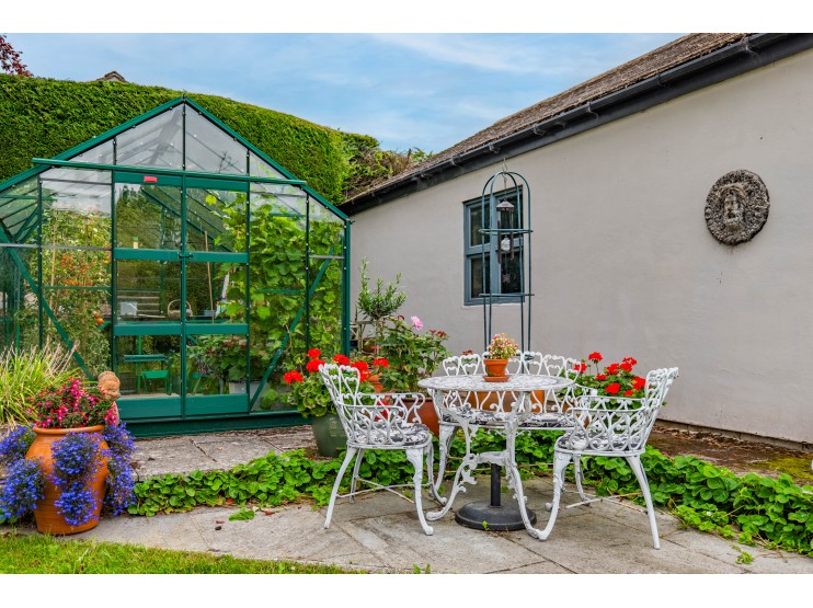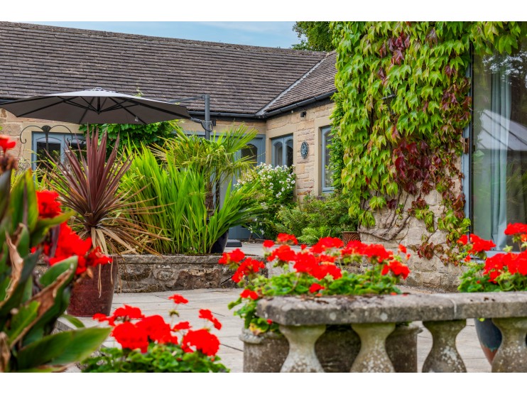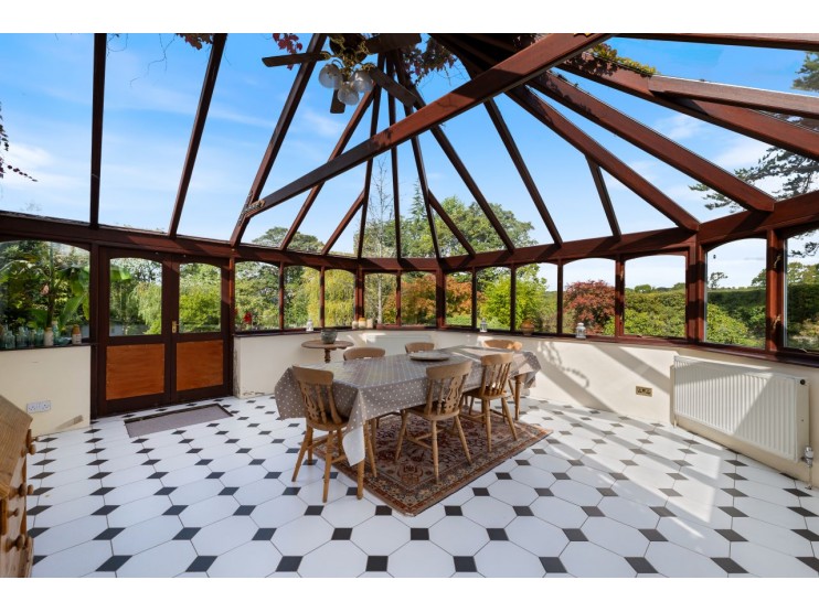 Conservatory – 5.51m x 5.18m (18’ 1” x 17’) with hardwood double glazing and a similar high pitched roof with fan light constructed above a stone base and finished with a ceramic tiled floor.  The conservatory offers superb views and direct access to the surrounding gardens, whilst the addition of central heating radiators allow year round use.