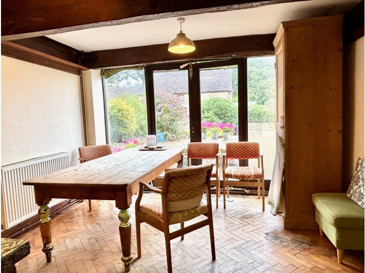 Living / dining room – 4.90m x 4.73m (16’ 1” x 13’) fully glazed with doors facing the courtyard and a similarly feature glazed window and beams.