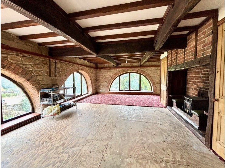 Bedroom 4 – 4.80m x 4.03m (15’ 9” x 13’ 3”) a generous double bedroom with beamed ceiling and broad arched windows to the front and side.