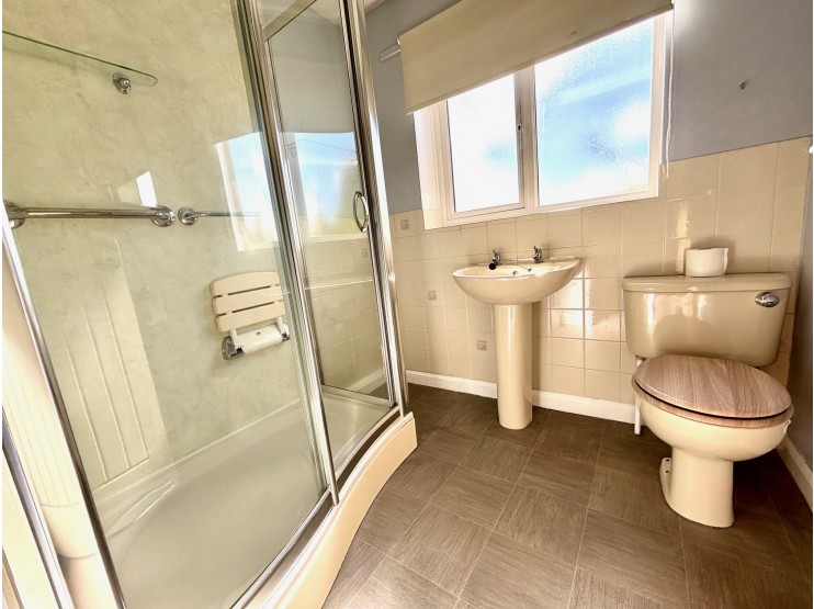 Bathroom – 2.08m x 2.08m (6’ 10” x 6’ 10”) fitted with a shaped shower tray with electric shower fitting over and dry-board surround, WC and wash hand basin.