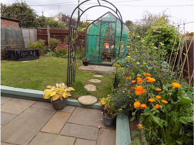 At the rear, the property has the benefit of a most pleasant, private enclosed garden, with stone flagged patio terrace and planted beds.  There is a useful greenhouse and further side garden space with raised beds, given over to vegetable, soft fruit and flower production.  A wide gravel path extends along the other side of the bungalow, upon which is situated a free-standing oil-fired boiler for domestic hot water and central heating.
