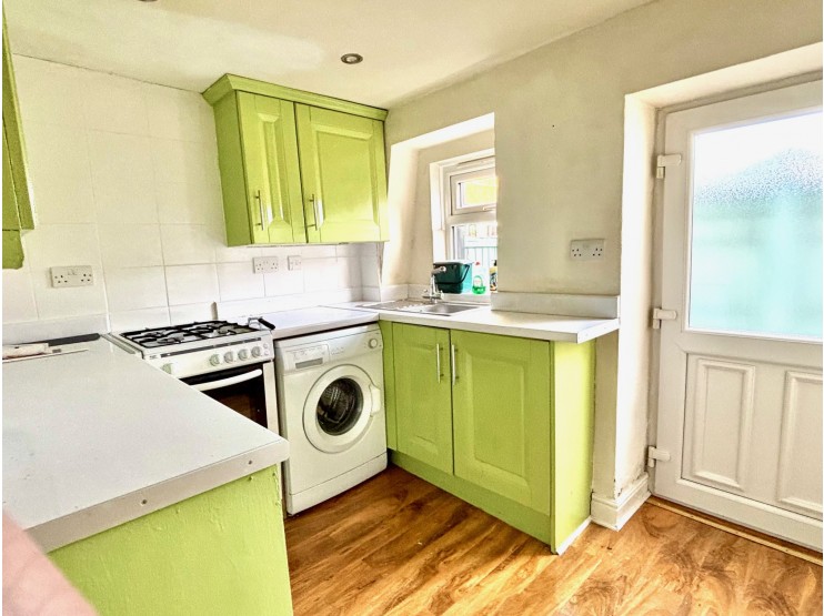 Kitchen – 2.80m x 2.16m (9’ 2” x 7’ 1”) fitted with a range of built in cupboards, work surfaces, stainless steel sink unit. There are positions for free standing appliances, gas cooker point. A useful understairs store cupboard provides useful additional storage. A uPVC back door allows external access to a small yard/sitting area.
