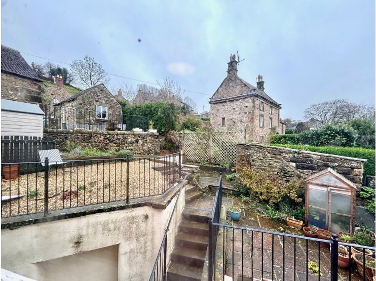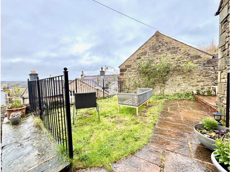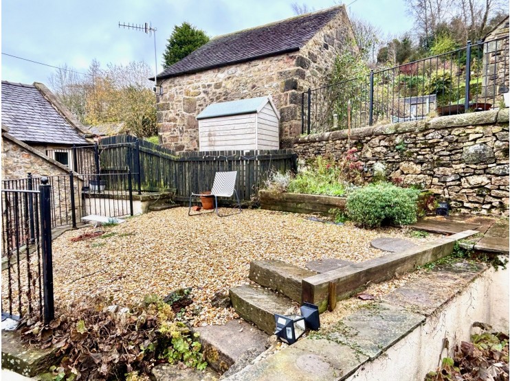 An attractive forecourt garden is behind natural stone walls, which shelter the property from the roadside. The larger garden area is found at the rear and accessed higher up East Bank where a broad drive provides car standing for two vehicles, side by side. The drive is separated from the gardens by a low wall and a useful stone and slate store / workshop. Adjacent to the workshop is the first of a range of patio terraces with iron railings between the tiers and which extend to a further two or three areas, some stone paved, some gravelled, but each of which offering excellent vantage points for relaxation and outdoor entertainment, and to take advantage of the far reaching views across the rooftops of the village.