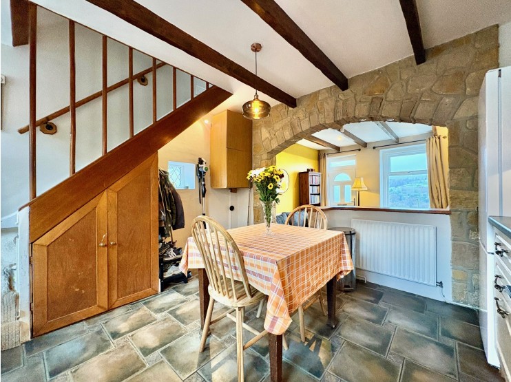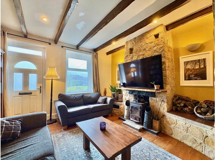 This attractive end terraced stone cottage is positioned well back from the main road, which allows for a good sized front garden and delightful countryside views. The comfortable, well presented and well balanced accommodation, which spans three floors, comprises sitting room and kitchen to the ground floor, two bedrooms and bathroom to the first floor, with the principal bedroom at second floor level. Outside, there is the benefit of off road parking via a long driveway, good sized gardens to both the front and rear, and stunning surrounding views.