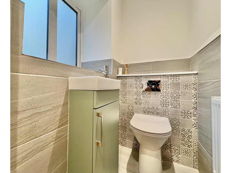 Cloakroom / WC – fitted with a WC with fitted cistern and wash hand basin set above a useful storage cabinet.