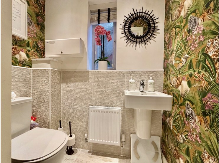 Cloakroom / WC – accessed through the utility room, with WC and wash hand basin.