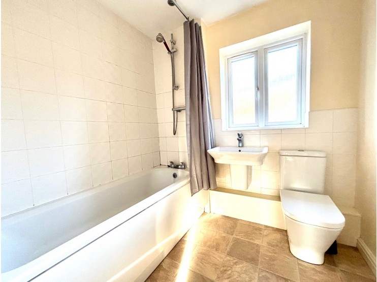 Bathroom – fitted with a panelled bath with shower over, wall hung wash hand basin and WC. Rear facing window.